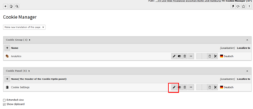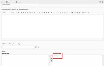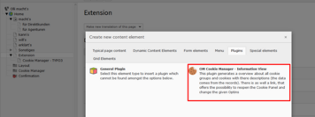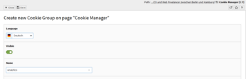 Öffne jetzt erneut den Cookie Panel und wähle die Gruppen aus die du als Auswahl anbieten willst. Die Reinfolge in der die Gruppen im Datensatz angeordnet werden ist relevant für die Ausgabe.